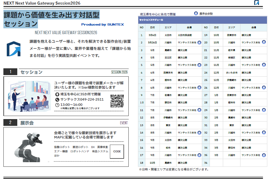 - 埼玉県、北関東にて、生産現場の省力化・合理化・省エネを実現する最新技術・製品が一堂に集結!