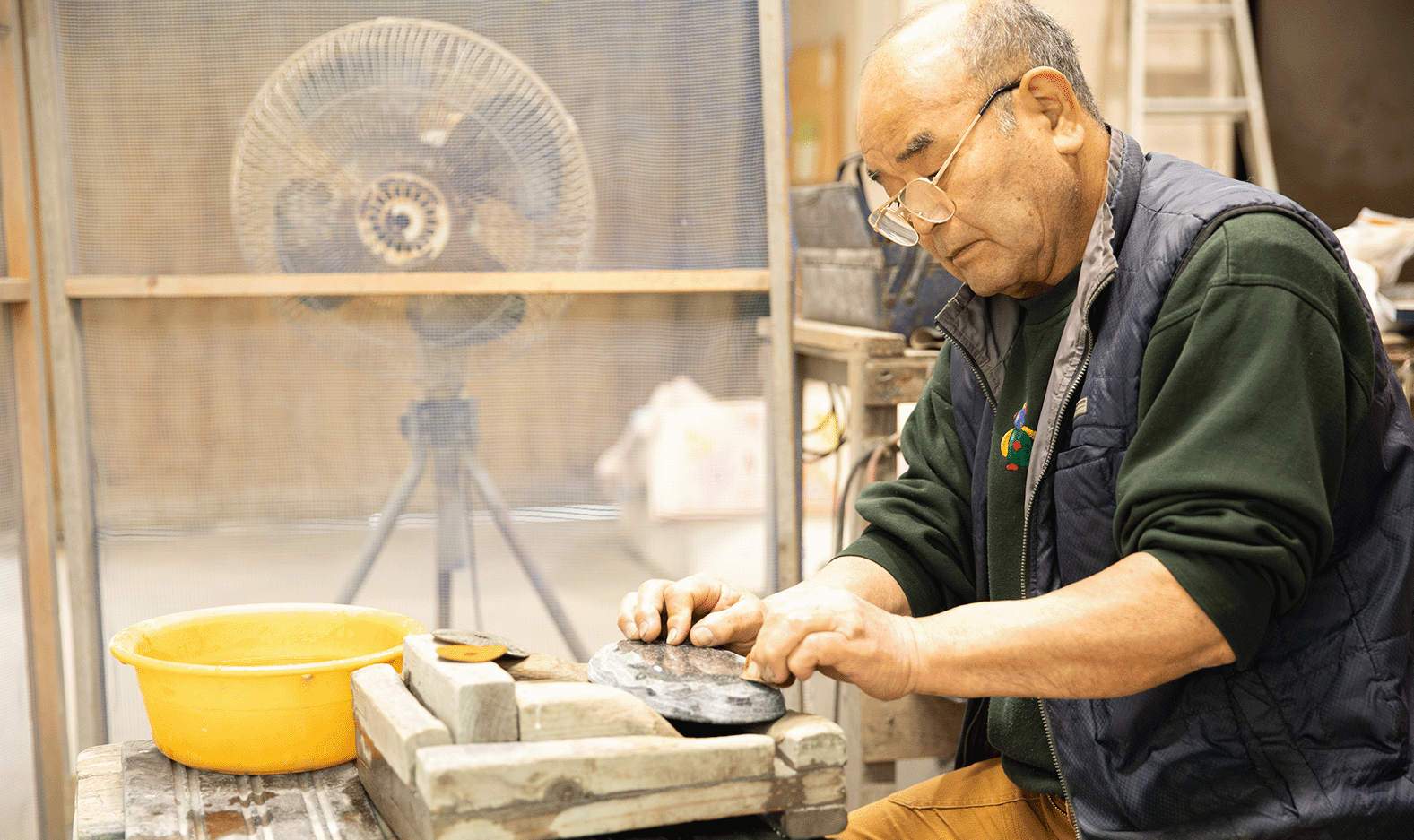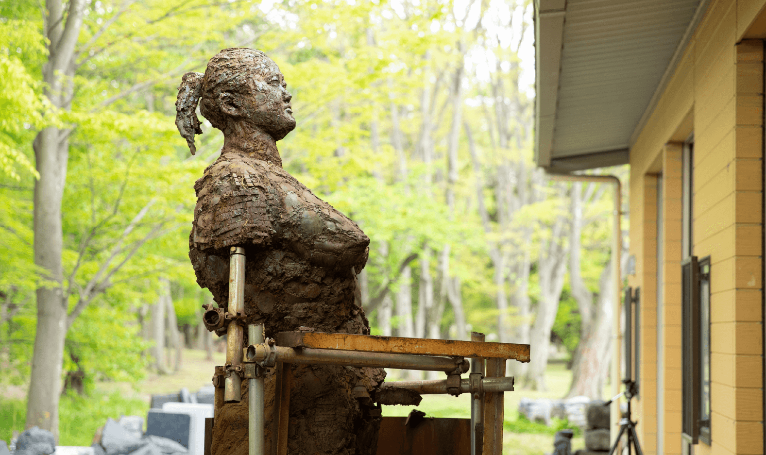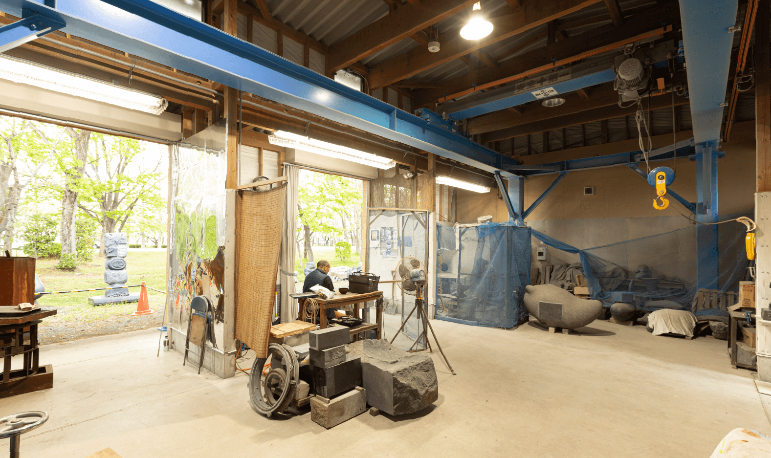 - 「川越を文化都市として、また芸術の香りに包まれた都市として、市民の皆さんが受け入れるようになって頂きたい」アトリエ・ 伊勢沼工房は、そんな願いからスタートしました。初代理事長・齊藤 英雄と共に設立に奔走した彫刻家・田中 毅先生は、彫刻の街づくりに共鳴し、川越へ在住して40年以上。この地で彫刻の制作にあたっています。その作品は、当社敷地内にも多く飾られており、従業員やお客様の心に安らぎを与えています。